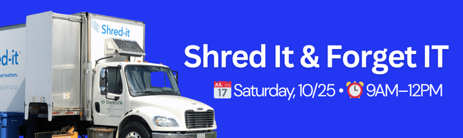 Join us on Saturday, October 25th from 9:00 AM – 12:00 PM for a FREE Shred Event. This is the perfect chance to clear out the clutter, securely dispose of old documents, and enjoy the peace of mind that comes with protecting your personal information.